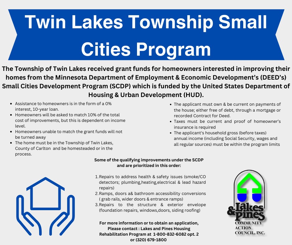 Twin Lakes Township, Carlton County, Minnesota. Our township is full of diversity, from its forests and lakes to its more urban areas. We border Jay Cooke State Park and from here it's just a short drive to the north shore of Lake Superior.